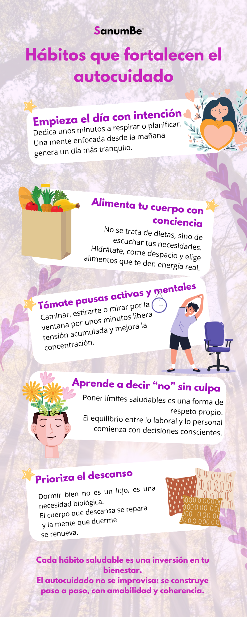 Contenido Digital Audios Aquí se publicarán los audios próximamente Importancia red de apoyo by SanumBe https://sanumbe.com/wp-content/uploads/2025/12/Importancia-red-de-apoyo-.mp4 Audio - Red de apoyo en el entorno laboral by SanumBe Cápsulas Aquí se publicarán próximamente InfografíasAquí se publicarán próximamente. Your Title Goes HereYour content goes here. Edit or remove this text inline or in the module Content settings. You can also style every aspect of this content in the module Design settings and even apply custom CSS to this text in the module Advanced settings. Click Here Red de apoyo estrés Equilibrio emocional Autocuidado Meditaciones